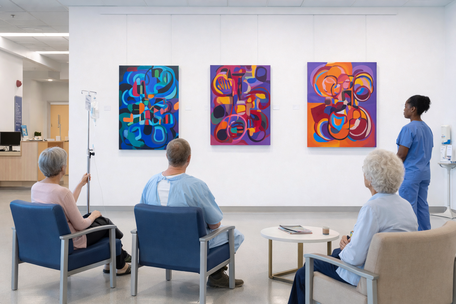 Studies show art in healthcare settings reduces patient anxiety. Our system lets you rotate artwork in waiting rooms and corridors hygienically — without creating dust or debris from drilling.